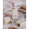 Bambucké máslo, slunečnicový olej, kokosový olej, avokádový olej, ricinový olej, citrát sodný, laktát sodný, 100 % éterický olej bergamot, levandule a ylang-ylang, bez barviv, zdobeno sušenými květy vřesu obecného, před použitím doporučujeme květy odstranit.